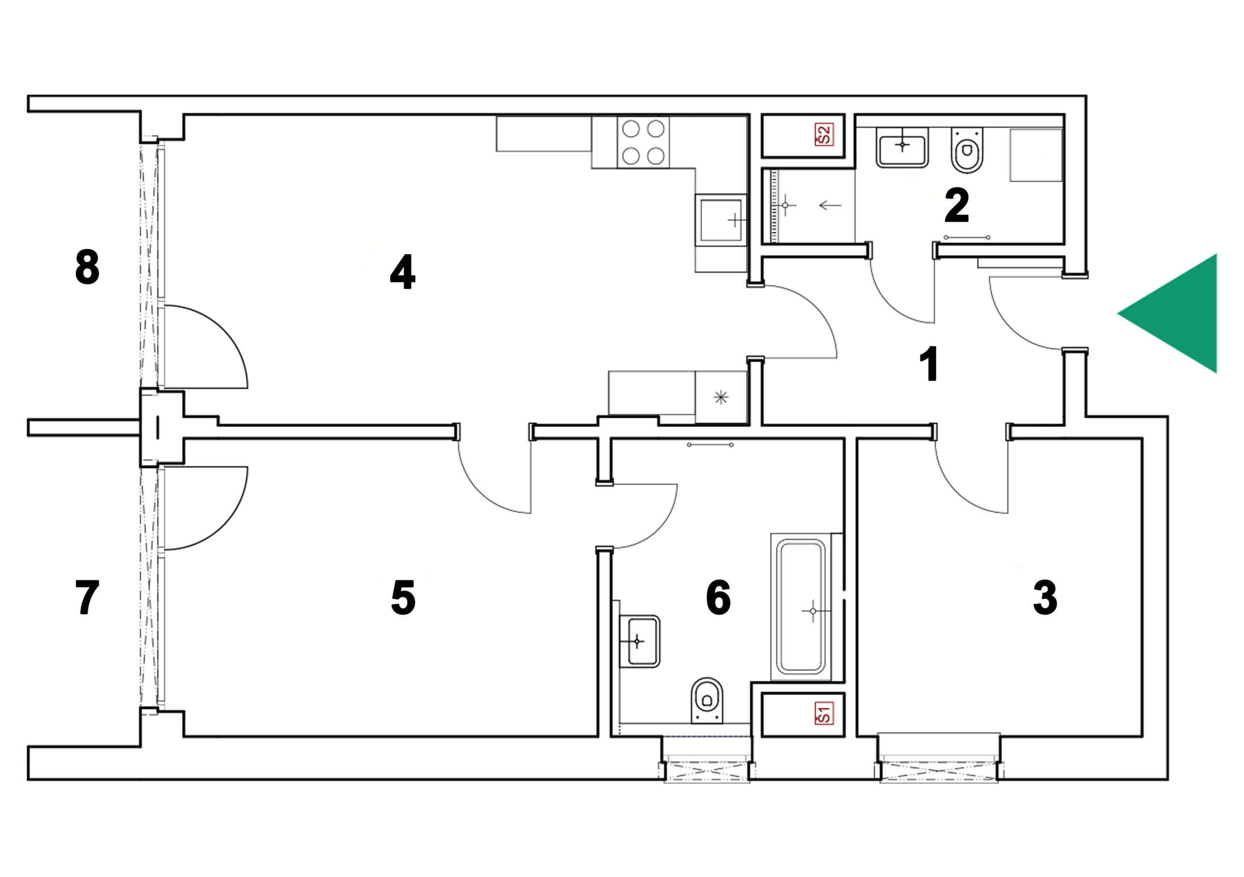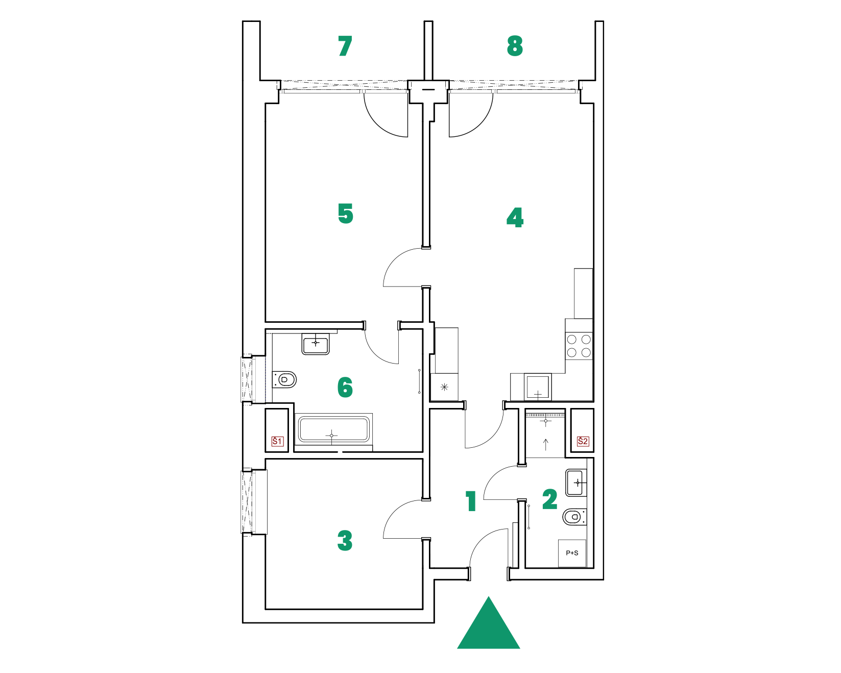 | 4 | Obývací pokoj + KK | 23,47 m2 |
