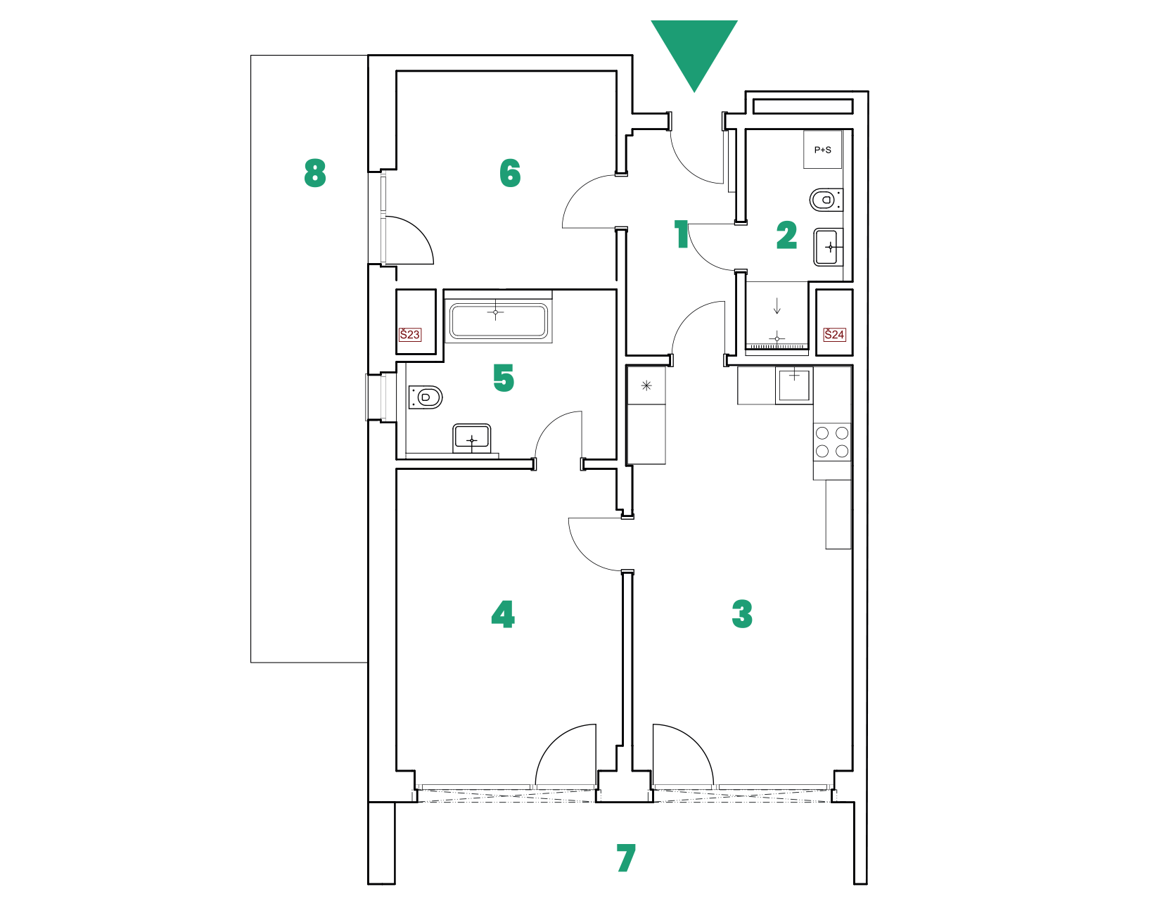 | 3 | Obývací pokoj + KK | 22,73 m2 |